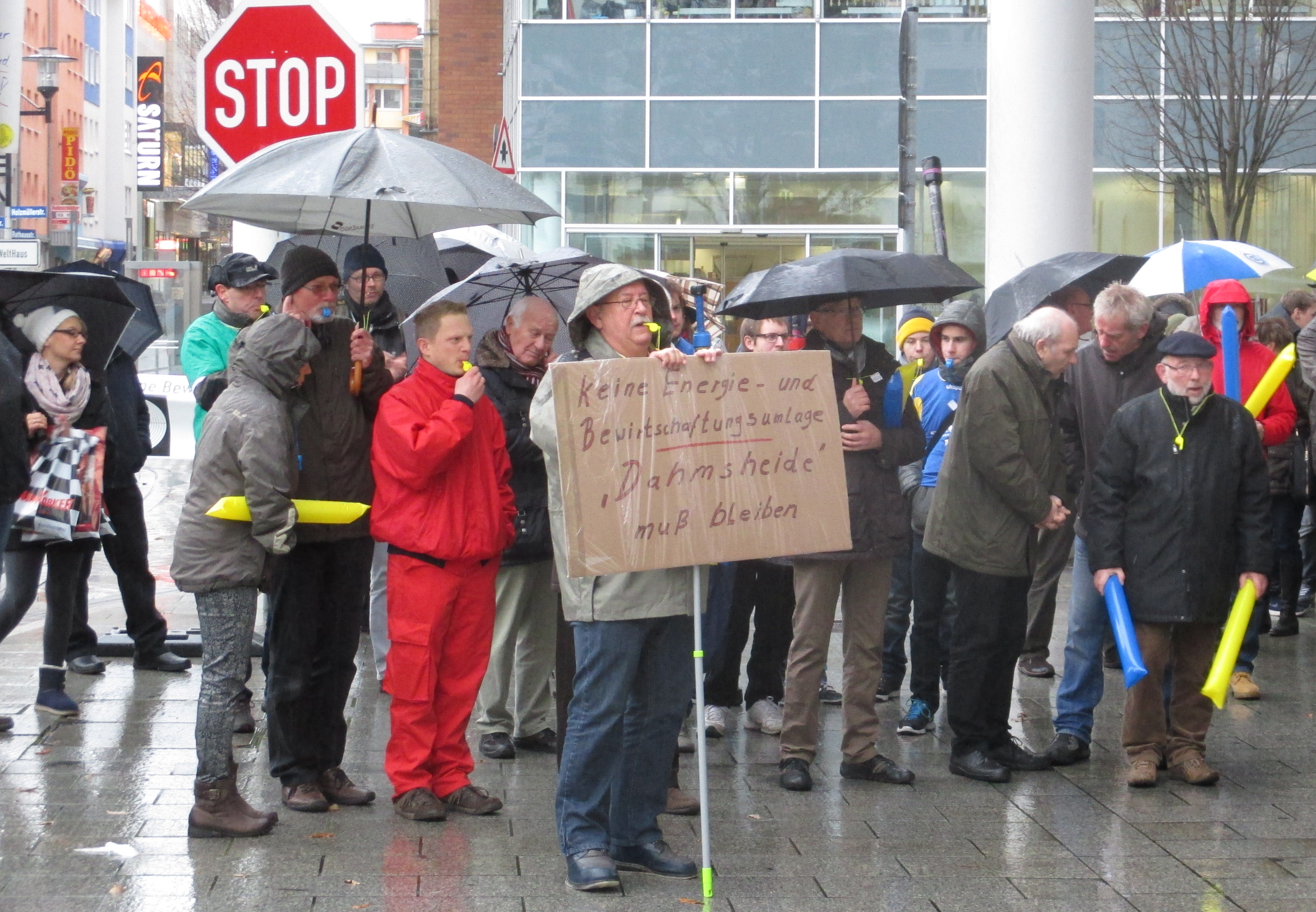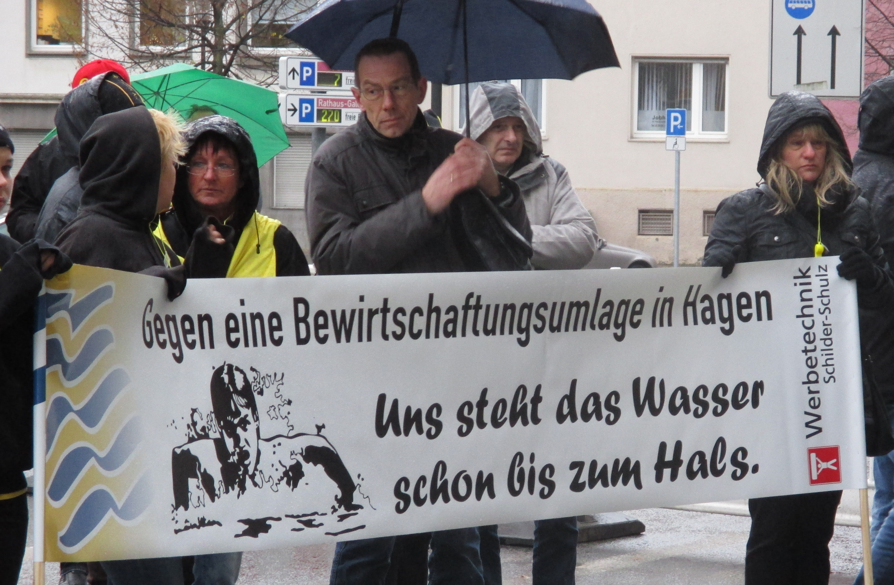 Trotz schlechtem Wetter und der frühen Uhrzeit (13:00) fanden sich noch eine beeindruckende Anzahl von Hagener Sportlern ein um deutlich ihren Unmut über die Einführung einer Energie- und Bewirtschaftungsumlage kund zu tun.