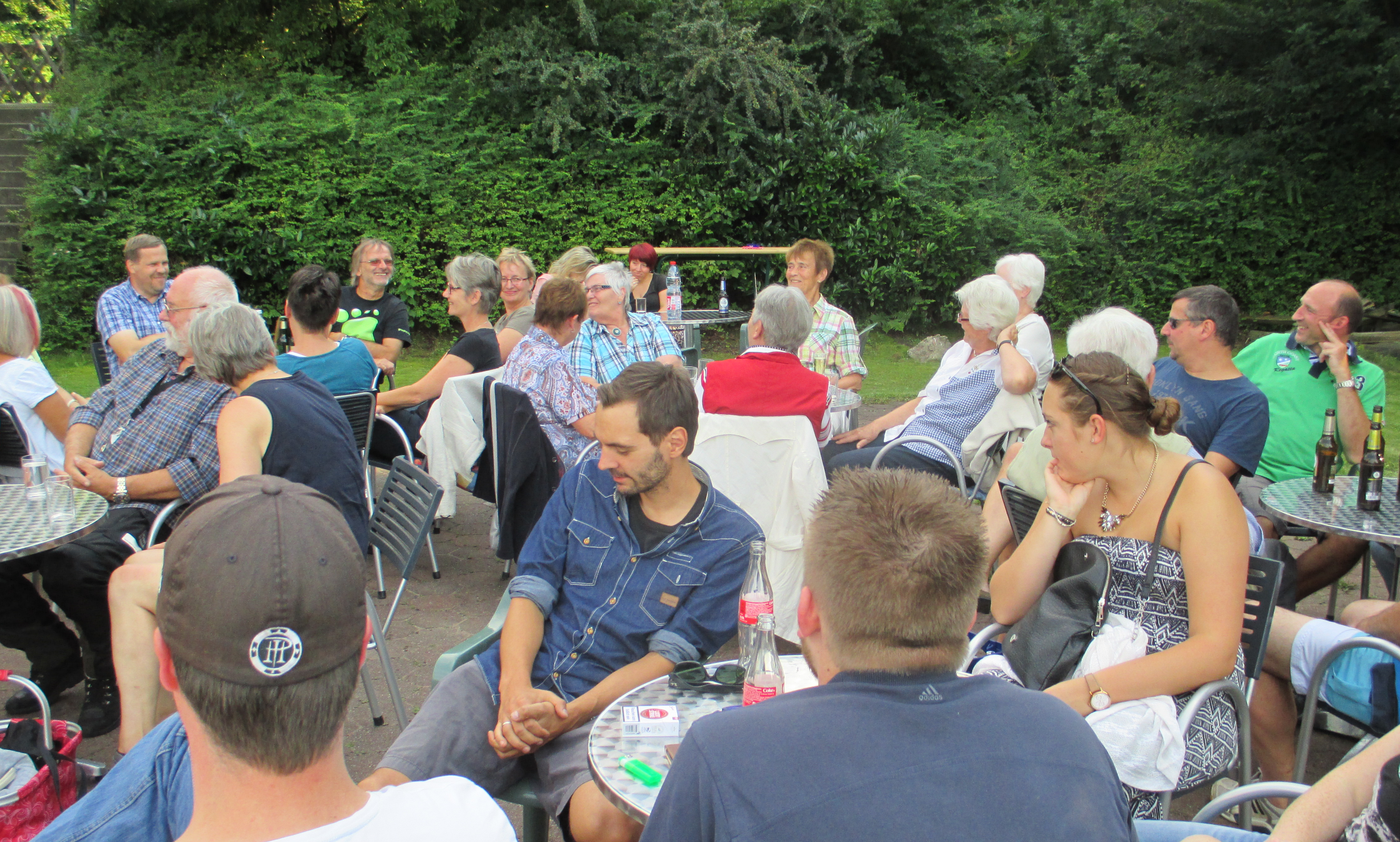 Tolles Wetter, tolle Stimmung – was will man mehr. Samstag gab es bei blauem Himmel das „Dankeschön-Essen“ für ÜbungsleiterInnen in Verbindung mit den sportlichen Ehrungen für das Jahr 2014. Nachdem wir ja bereits die Jubilar-Ehrungen im Mai durchgeführt hatten folgten nun die sportlichen Ehrungen, ebenfalls getrennt von der Mitgliederversammlung. Diese Trennung erfolgte auf den Vorschlag einer internen Arbeitsgruppe, um den zeitlichen Rahmen der Mitgliederversammlung zu kürzen.