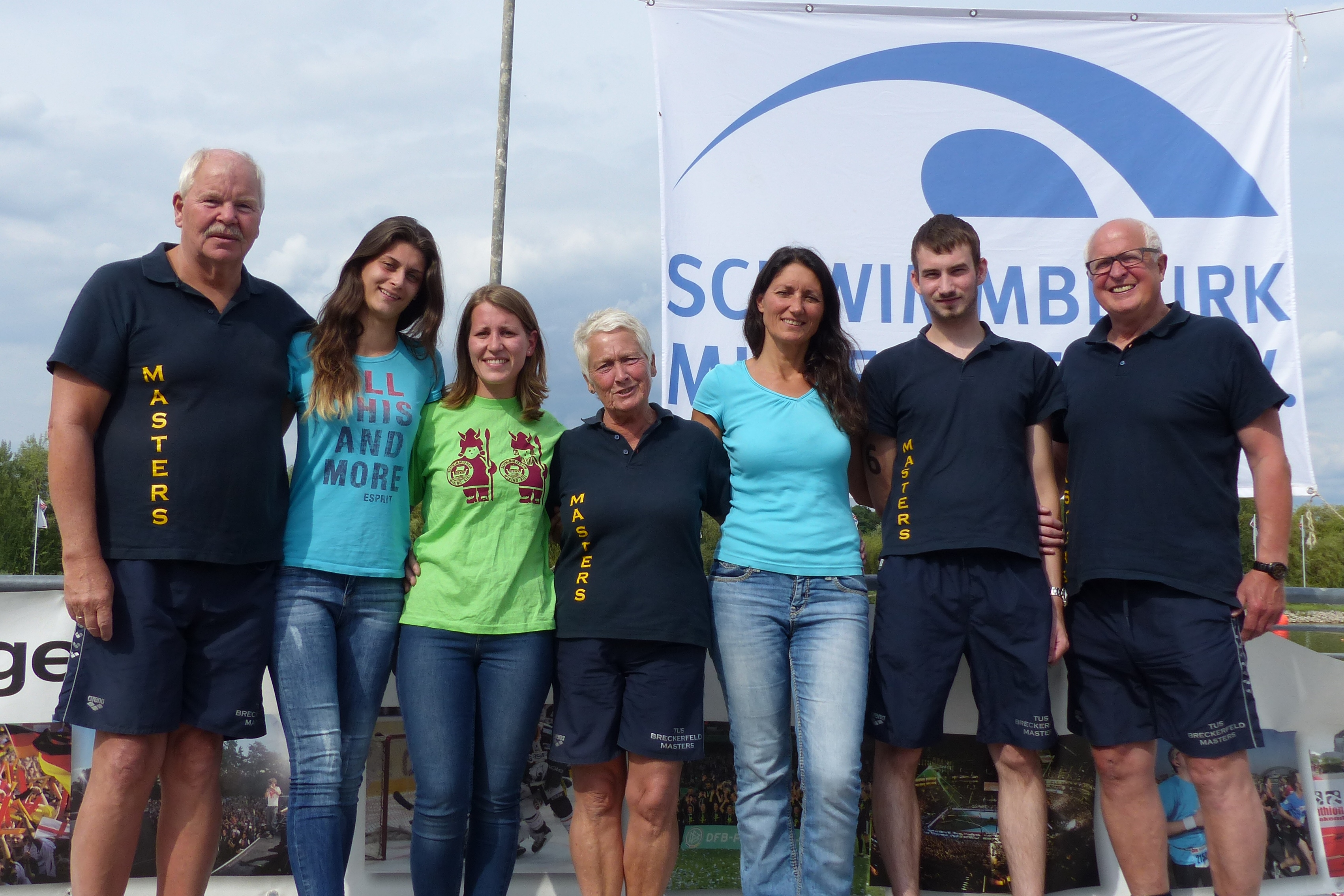 Die heimischen Masters in Köln-Fühlingen: (v.l.) Lothar Henn, Evelin Trayanova, Sofia König, Petra Henn, Teodora König, Benedikt Steinweg und Karl-Heinz Rickert (c) Lothar Henn