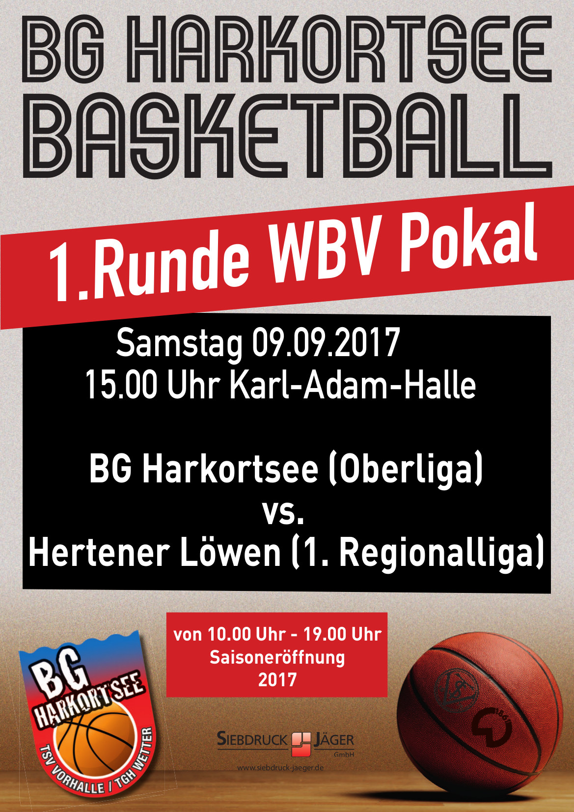 - 15:00 Uhr WBV Pokalspiel BG Harkortsee 1 (Oberliga) vs. Hertener Löwen (Regionalliga)