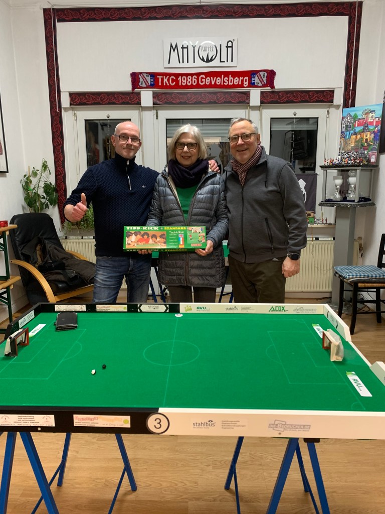 Kurz vor Karneval waren wir dann in Gevelsberg. Mit Siegfried Gies hat uns ein begeisterter Vorstand in die Feinheiten des Spieles und auch in den Verein dahinter eingeführt. Der TKC 1986 Gevelsberg spielt in der 2. Bundesliga Süd/West der im Tipp-Kick organisierten Vereine. Dabei ist der TKC der größte Verein und sehr professionell aufgestellt. Allein die Art und Weise in der Sponsoren angesprochen und eingebunden werden ist spannend und braucht den Vergleich mit „großen“ Ballspielen nicht zu scheuen.