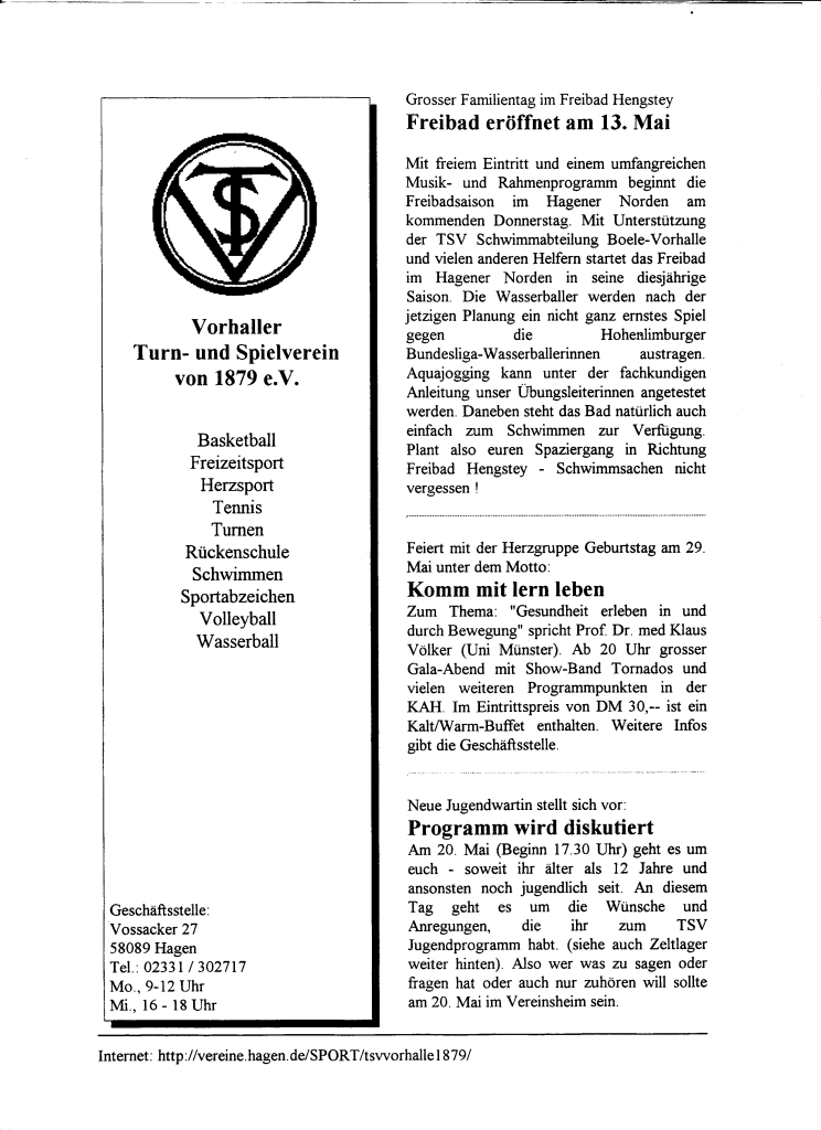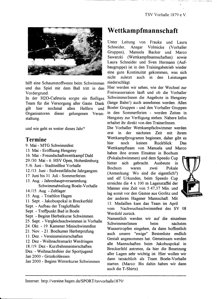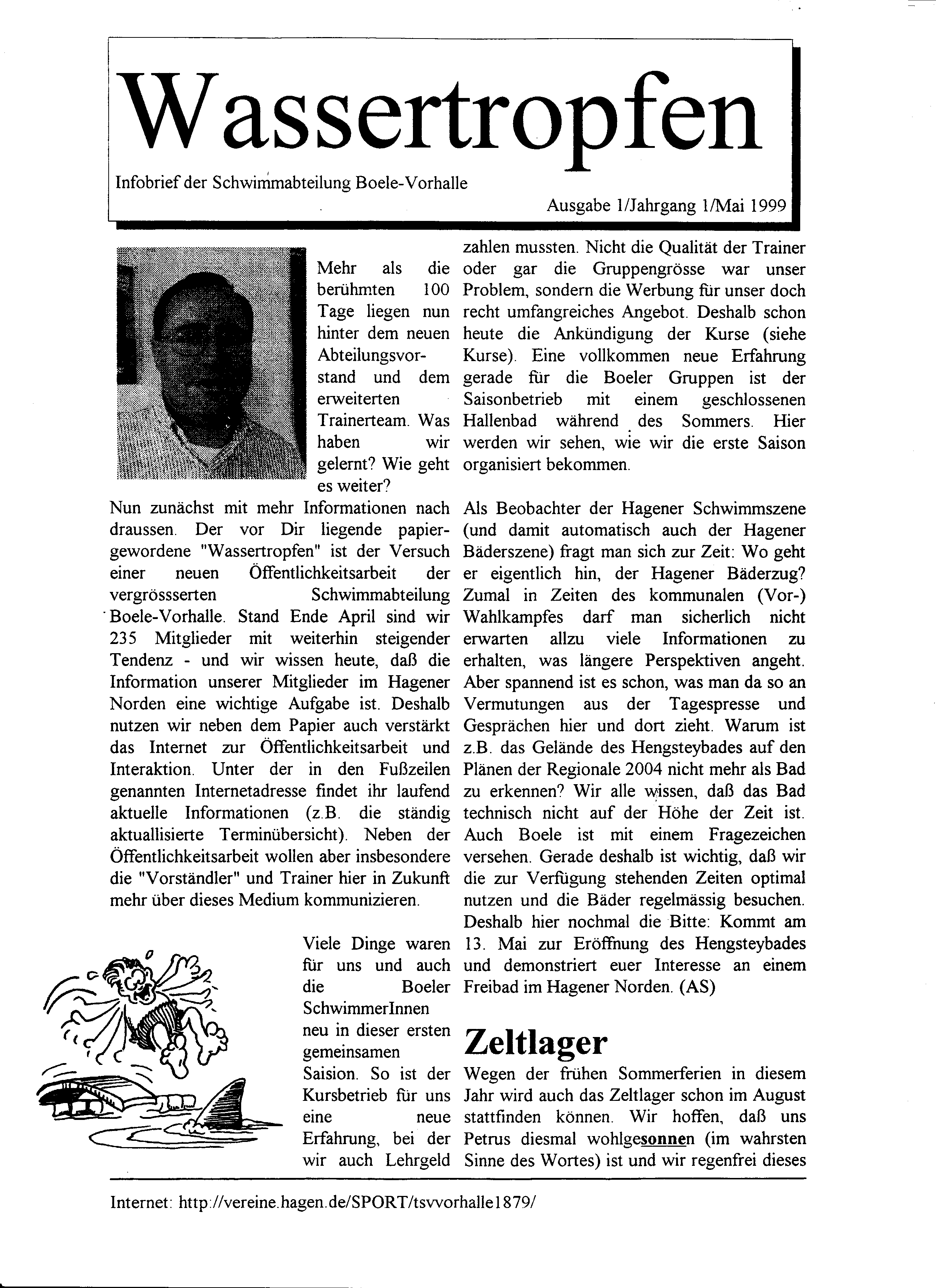Ende der 1990iger war die Abteilung jedoch noch im Aufschwung und wir haben damals einen eigenen Infobrief unter dem Titel „Wassertropfen“ veröffentlicht. Die Nummer 1 ist uns jetzt im Archiv in die Hände gefallen und wir veröffentlichen sie hier noch einmal mit den Scans des Originalles.